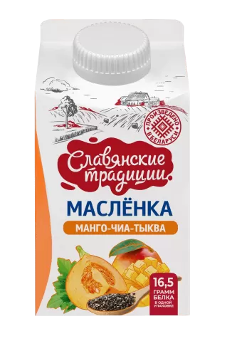 Напиток кисломолочный "Маслёнка" на основе пахты "Манго-чиа-тыква" 1,5% 0,5 кг
